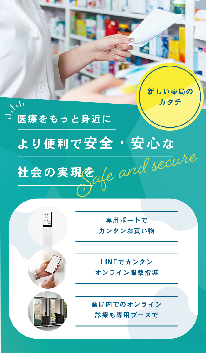 りんどう調剤薬局は医療DXを進め、より便利で利用しやすい薬局を運営しています。オンラインでの服薬指導や、電子処方箋など医療に関することはもちろん、日用品も購入可能な電子ポートを設置しています。
